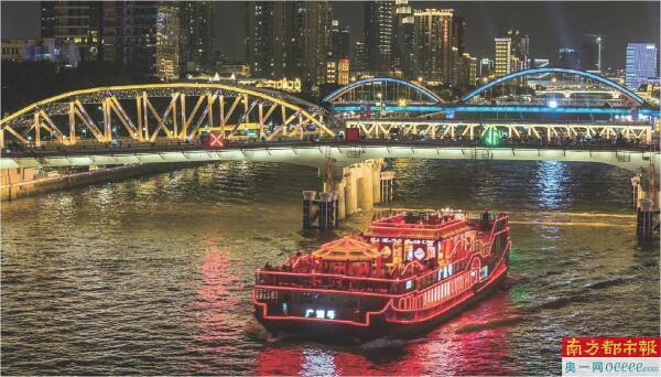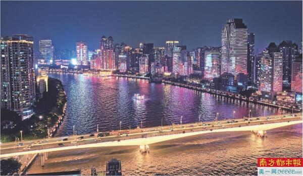 珠江上多桥亮灯,为十五运会喝彩