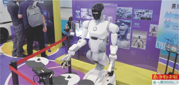 机器人“爱宝”正激情“演奏”架子鼓。