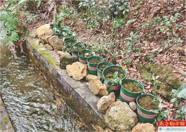 研究团队在象头山开展高压繁殖实验——生根枝条的种植管护。