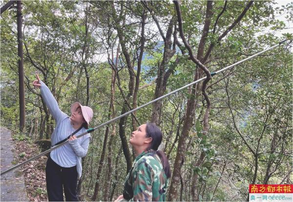 研究团队在象头山调查博罗红豆结实状况。
