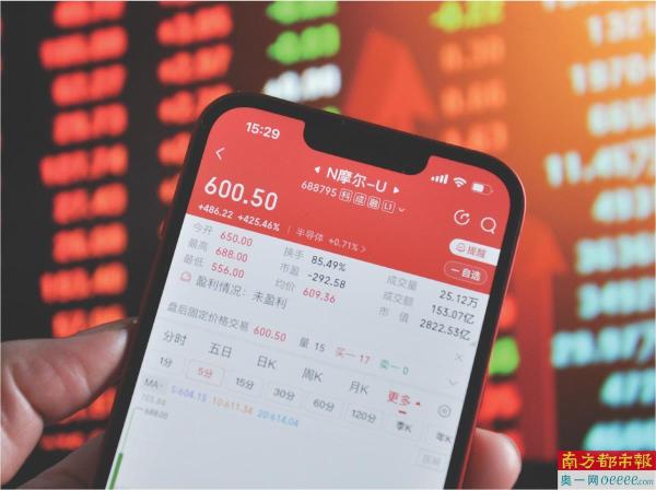 2025年12月5日,三大股指集体收涨。图为一股民手机上呈现的摩尔线程收盘价为600.50元/股。 IC供图