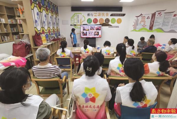 彩虹街道荔景幸福树里老年健康科普课正在开展