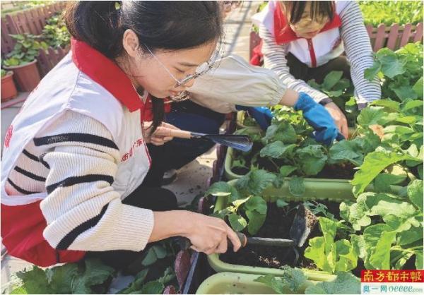 志愿者正悉心料理爱心农场里的蔬菜