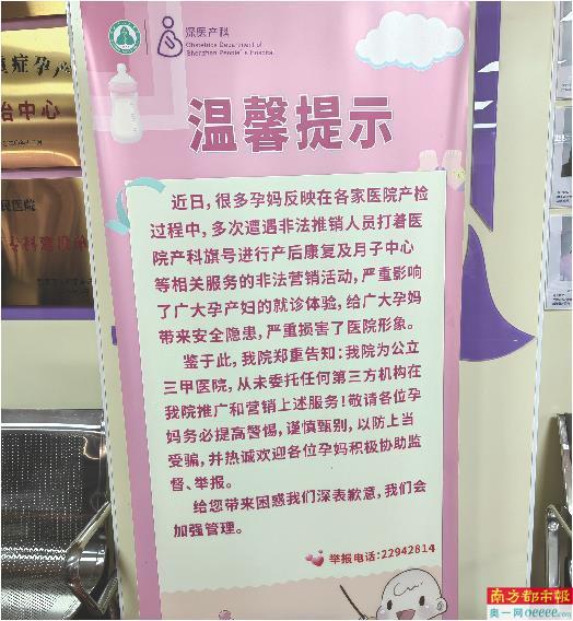 近期,记者在深圳市妇幼保健院(福强院区与红荔院区)、宝安妇幼保健院、香港大学深圳医院等多家医院的产科及超声科相关区域实地走访时发现,月子中心、月嫂机构等推销人员在此频繁出没,活跃于就诊多个流程中。