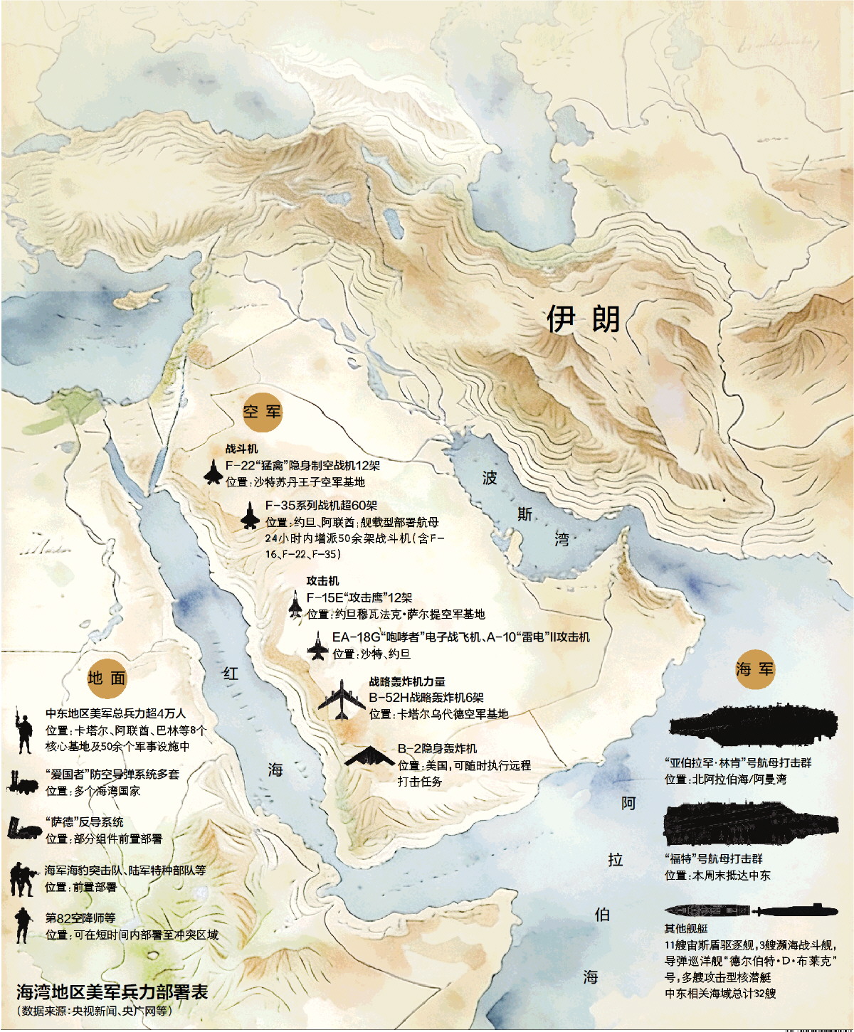 海湾地区美军兵力部署表