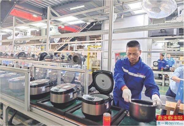 正是顺着这一方向,有着“中国小家电产业基地”美誉的湛江廉江市,迎来了小家电产业智能化转型的关键转折,廉江的许多小家电企业也尝到了“数改智转”的甜头。“智能化转型后,一条(电饭锅)生产线的人效比提升了超过70%。”廉江市家用电器协会会长陆锡章举例说,如今自己所在的企业,平均21秒就能组装一个电饭锅。