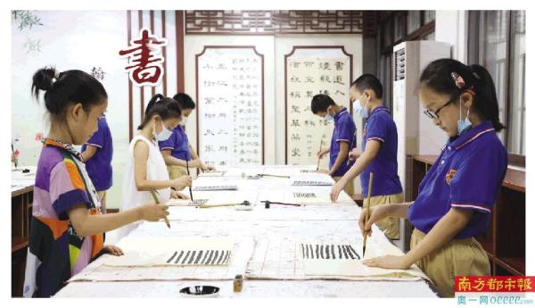 小北路小学天香校区的素质托管书法课。