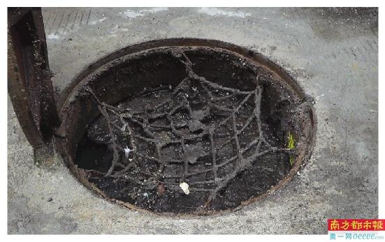 打开井盖发现污水已满至防坠网。