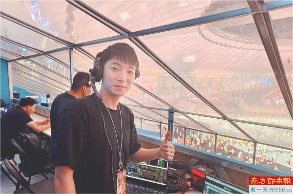 成都大运会开幕式彩排,林旭春在工作中。 受访者供图