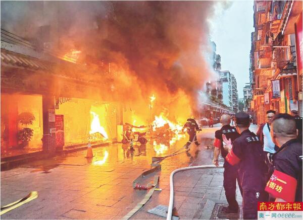 今年5月,广州三元里一停放在室外的电动自行车自燃引发火灾。 南都资料图