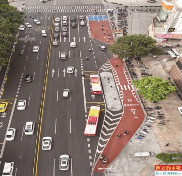在海珠区江南大道-同福东路路口打造的后绕式公交站台,获得了当地居民的好评。市民舒女士赞扬道:“路口现在变得清爽了,我们出门搭公交车也感到更安全。”交警部门还同步打通人行道路面的高低差,通过标线规范公交站台区域慢行系统通行条件,充分利用路口道路资源,避免了路口车辆违停违法行为的发生,有效提升路口的安全性。