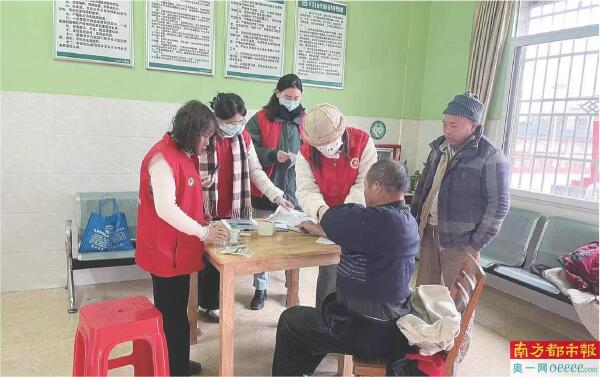 暨南大学护理学院社会实践队在韶关市始兴县顿岗镇为村民量血压。 受访者供图