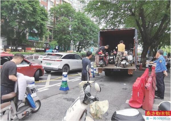 类似的整治行动同样在荔湾区开展。在滘口地铁站,执勤工作人员郑先生告诉记者:“每周职能部门会到现场查处违章电动车三次左右。有时因为违规停放可能会出现被拖走等情况,车主们总体能自觉配合停放好电动车。”