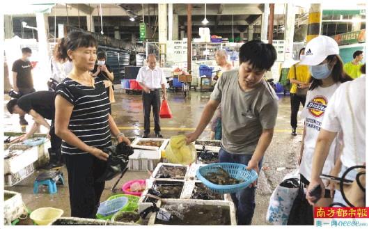 7月25日早上,不少市民趁着周末休息时光前来购买新鲜食材。