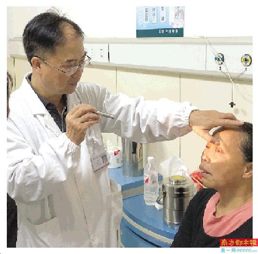刘精锋为患者检查眼视力情况。