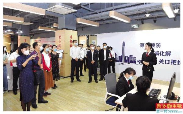 与会嘉宾现场观摩梅林街道诉源治理非诉解纷中心及诉讼服务站。