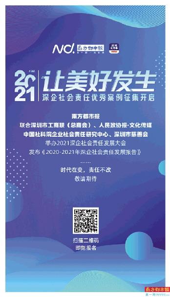 为推动企业更加积极地履行社会责任,当好“企业公民”,由南方都市报社联合深圳市工商联(总商会)、人民政协报·文化传媒、中国社科院企业社会责任研究中心、深圳市慈善会共同主办,广东省南方经济研究院、深圳市创新企业社会责任促进中心协办的“让美好发生”2021年深企社会责任发展大会,持续征集2021深企CSR(Corporate Social Responsibility,企业社会责任)案例。