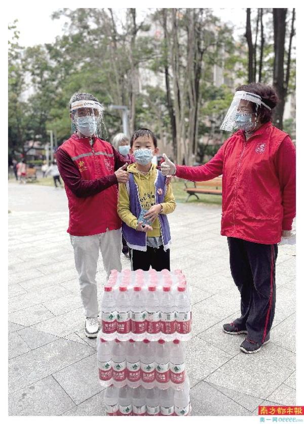 1月14日中午时分,一位7岁左右的小朋友在奶奶的陪伴下送来了三箱农夫山泉矿泉水。现场的医护人员、社区工作人员和义工志愿者们倍感温暖和惊喜。这是左可洋用自己攒了大半年的零花钱购买的矿泉水。