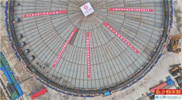 国家管网集团深圳液化天然气应急调峰站项目一期工程首座下沉式储罐完成升顶作业。 通讯员 严文婷 摄