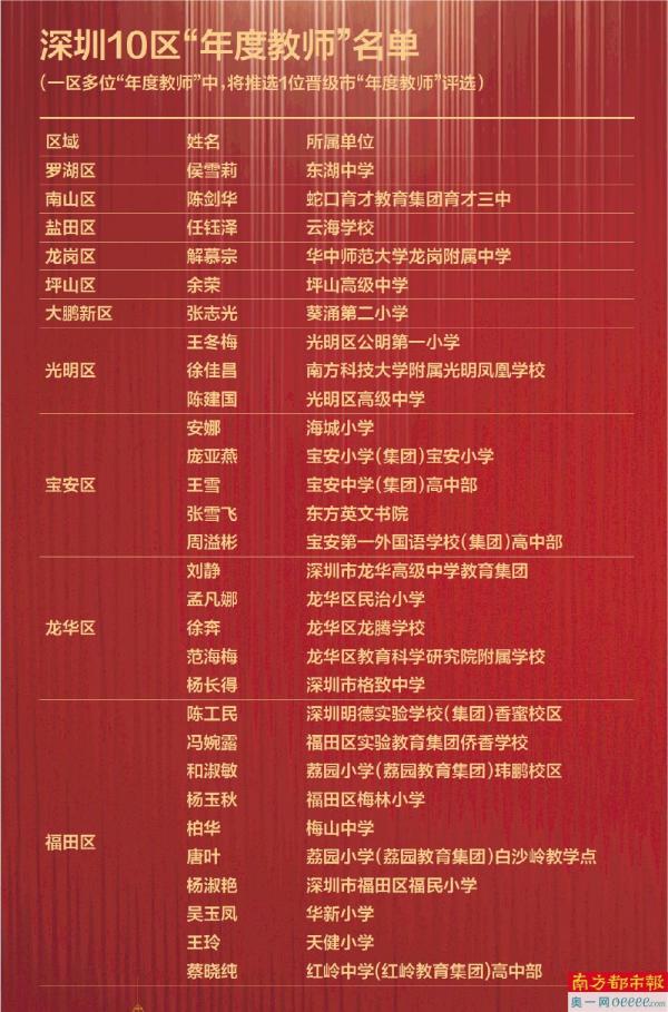 深圳10区“年度教师”名单出炉