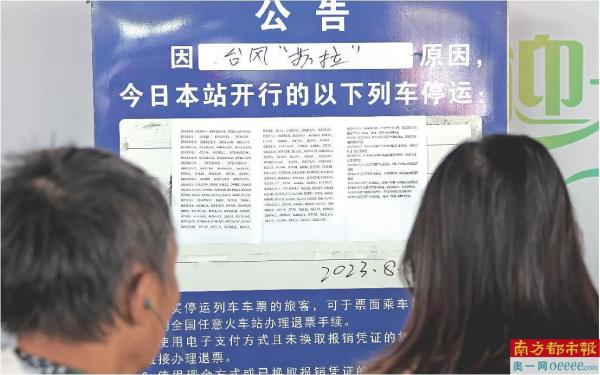 8月31日16时后途经杭深线(广东段汕尾以东)、梅汕线、漳龙线列车停运。