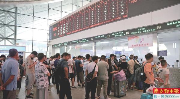 8月31日下午,深圳北站A2售票处前排满了等待处理车票的旅客。 南都记者 赵炎雄 摄