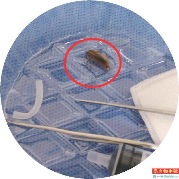医生取出的蟑螂。 受访者供图