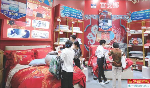 8月19日,上海秋季婚博会富安娜展台,市民选购床上结婚用品。 IC供图