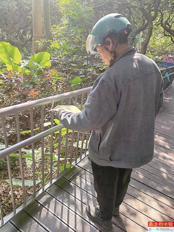 外卖小哥在“诗歌公园”“诗歌栈道”上读诗。