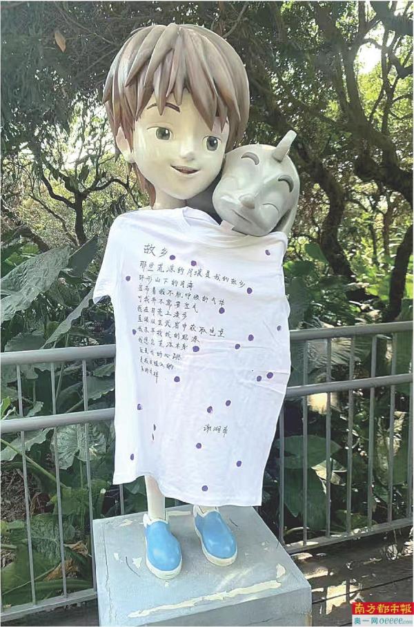 人物雕塑“穿”上了深圳诗人谢湘南的诗《故乡》。