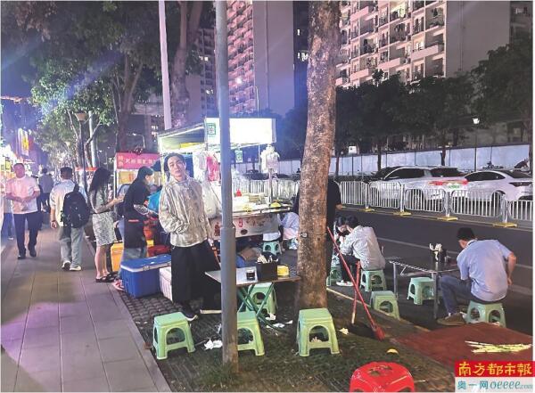 南都记者询问一名摊贩,她表示下午4点开始会有城管人员到现场,“现在他们下班了就不管了。”