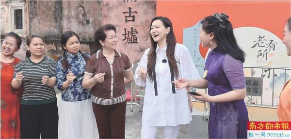 在观澜古墟,谭晶还与市级非遗项目观澜客家山歌传承人房运良交流互动。“想不想学客家山歌?”已86岁高龄的房运良十分高兴,询问谭晶是否有兴趣学客家山歌,得到肯定回答后,房运良便开启了现场教学。“阿哥送妹送到竹头下,露水茫茫竹叶遮。竹叶遮哥哥遮妹,崖比阿妹坐底下。”四句客家山歌,让谭晶直呼“有难度”。