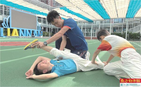 莲南小学学生李政恒习武三年多,教练笑赞其“边哭边练习”