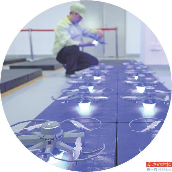 在位于龙华区的大漠大智控生产车间,工人在生产第四代无人机。