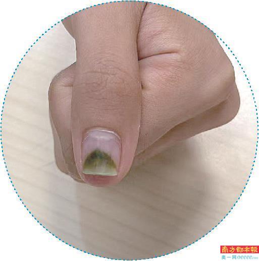 患者因美甲导致甲湿疹。