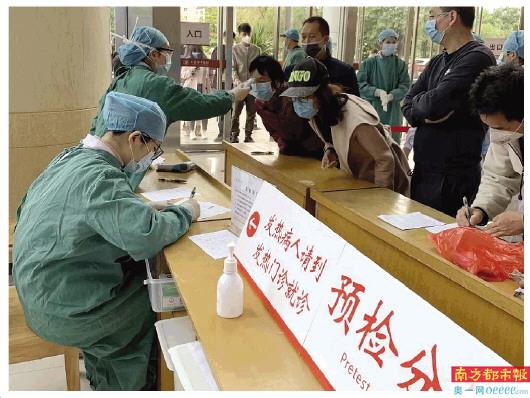 医院发热门诊为患者测体温。