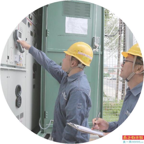 运维人员对铁场村新建电力设备开展巡检工作,确保电力设备安全稳定运行。 罗敏仪 摄