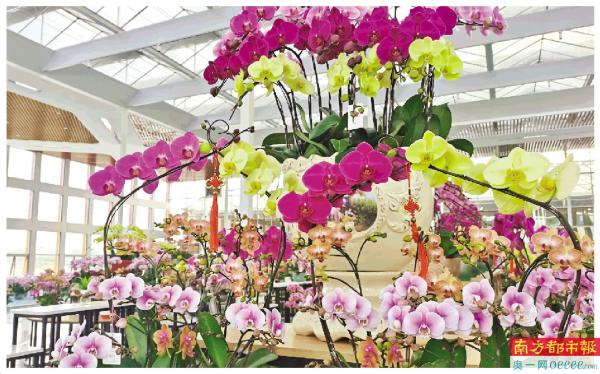 ↑博罗首届“云上年市”启动,花卉基地内蝴蝶兰争奇斗艳。