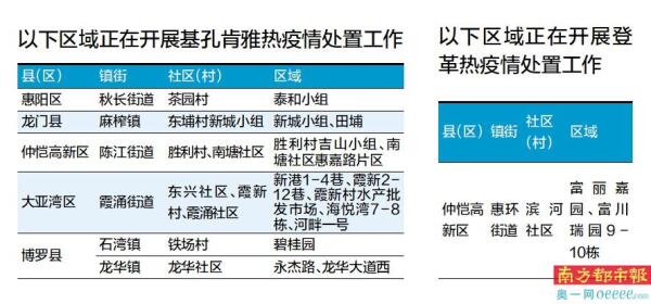 登革热疫情处置区域为仲恺高新区惠环街道滨河社区的富丽嘉园与富川瑞园。