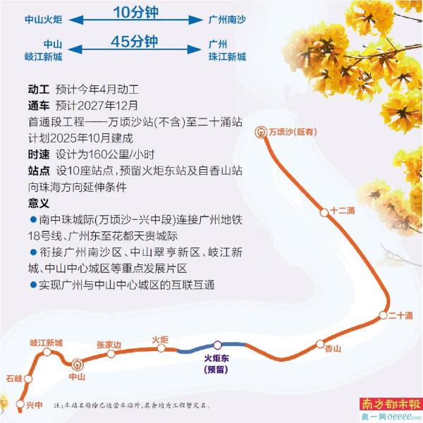 南中珠城际(万顷沙-兴中段)连接广州地铁18号线、广州东至花都天贵城际