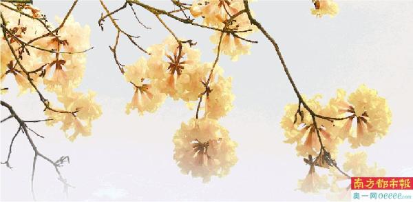 春日暖阳,博爱二路上黄花风铃木怒放,给中山增添一道亮丽的风景。 南都记者 吴进 摄