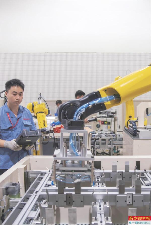 中山市格兰仕工厂内,工程师在调试设备。 南方日报记者 张令 摄
