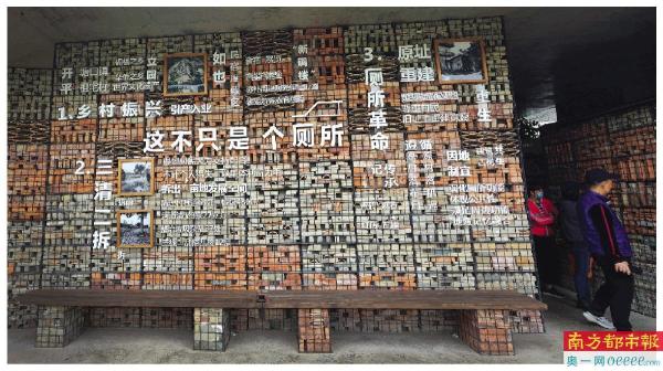 厕所外墙上写满了诸如“乡村振兴”“三清三拆”“厕所革命”之类的字样,设计感十足,尤其是正中央那句“这不只是个厕所”,仿佛向人们诉说着它的不平凡。