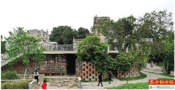 “第一次来这里时,地面散落着原来被拆掉的那些旧房子的材料”,开平景观厕所主创设计师林海锐告诉南都记者,“我们就想把这些废弃材料重新用回到这个新建建筑里,赋予它们第二次生命。”