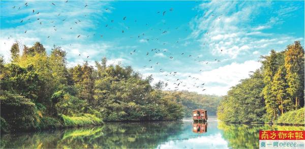 在新会区,“点绿成金”的故事同样精彩。“我从未在一棵树上见过如此多的鸟儿,它们和谐相处的场景,既壮观又温馨。”去年11月,上海游客艾女士在新会小鸟天堂国家湿地公园内乘船游览时不禁赞叹。这片独木成林的生态净土,通过长期以来不断加大生态环境保护和治理力度,已成为华南地区最大的鹭鸟自然孵化基地之一,每年孵化的鹭鸟超3万只。如今,这份独特的生态魅力正源源不断地转化为发展动能——今年上半年,新会小鸟天堂国家湿地公园接待游客量约21万人次,创造营收约800万元,其中,“五一”假期旅游人数达7.08万人次,同比增长56.95%。今年6月,这份侨乡绿意更跨越山海,飞抵日本大阪世博会,以“小鸟天堂”为蓝本打造的“科幻森林”成为全球焦点,生动演绎着“独木成林、万鸟归巢”的东方生态奇观,让侨乡“两山”转化的故事闪耀世界。