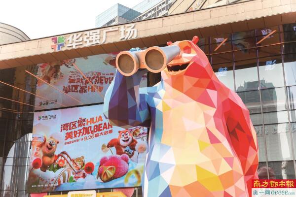 从2024年“全国首座‘熊出没’主题购物中心”火爆全网,到如今客流与口碑的双线走高,位于宝安区福海街道的华强广场正试图为一道商业难题写下解法:如何让流量变成消费增量?华灯初上,高达10米的“熊大”雕塑透过望远镜,凝视着宝安大道上涌动的车流与远方渐起的万家灯火。这个巨大的童话符号,如同一个精准投下的文化锚点,在商场林立、业态频繁迭代的宝安,成为一股势不可挡的“西引力”。它不仅精准吸引着庞大的亲子客群,更在新商业语境中,重塑了公共空间的表达方式。